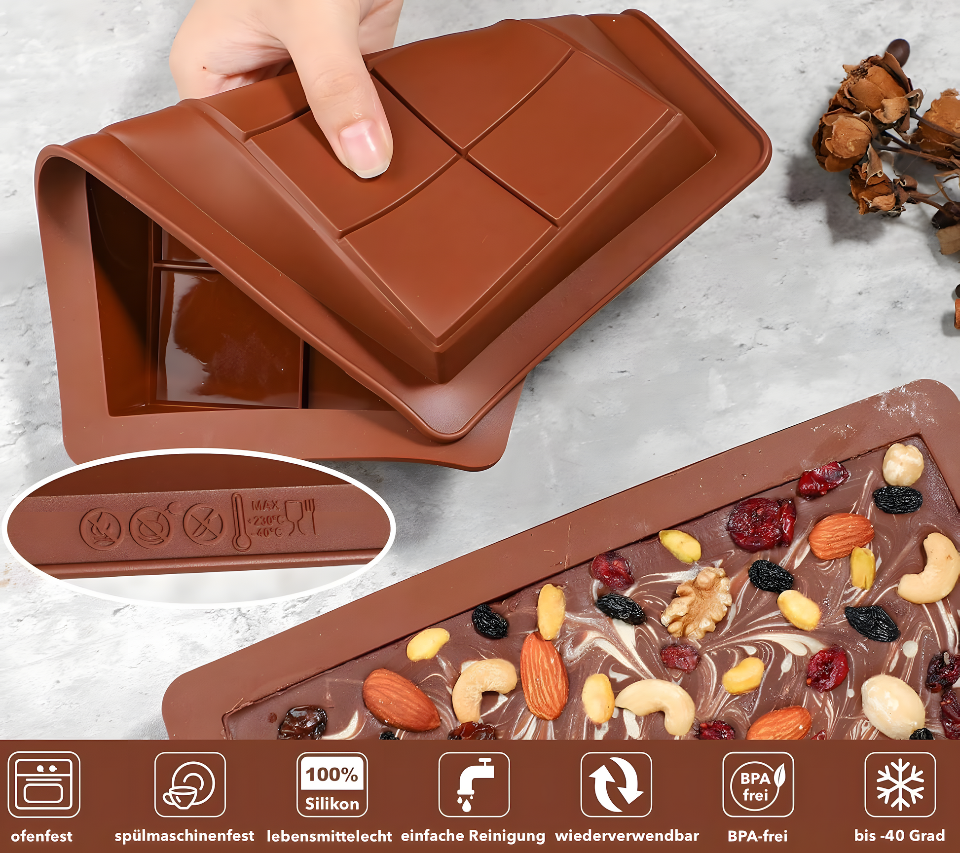 ANTIHAFT-SILIKON - Bereite deine Schokotafeln vor ohne die Form zusätzlich einzufetten. Die Schokoladen-Tafeln lassen sich einfach aus der Form lösen.