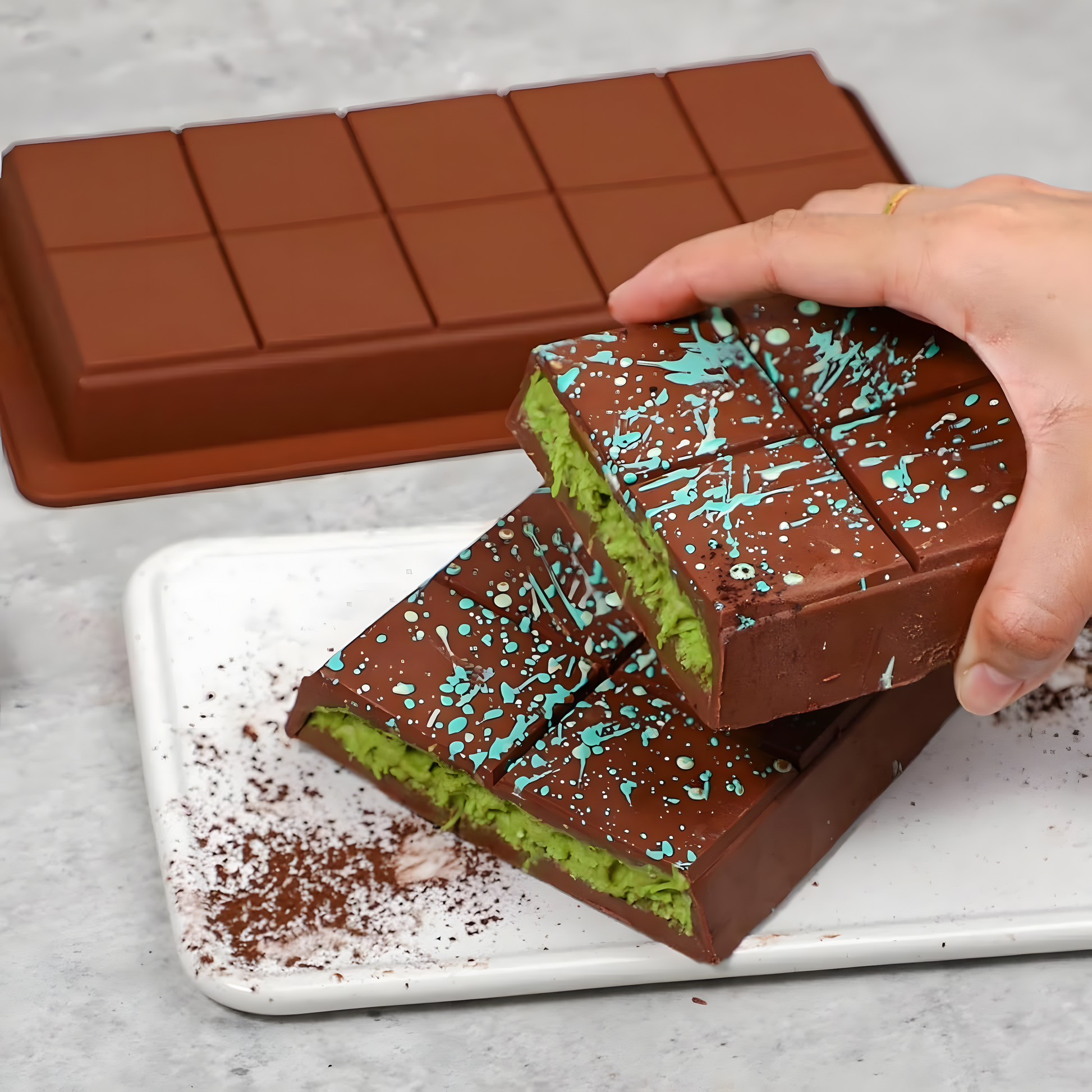 VIELSEITIGES SILIKONBLECH - Neben dem Zubereiten von normalen oder gefüllten Schokotafeln ist die Silikonform ebenfalls geeignet für Kreationen wie z.B. diverse Desserts, Dubai Schokolade, Duftwachs und auch Seife.